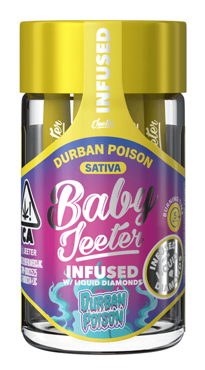 Durban Poison is a pure sativa originating from the South African port city of Durban. It has gained popularity worldwide for its sweet, earthy smell and citrus, piney flavor. Durban Poison is the perfect strain to help you stay productive through a busy day with its energizing effects when exploring the outdoors, or to lend a spark of upbeat creativity.